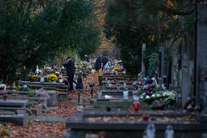 (251031) -- VARSOVIA, 31 octubre, 2025 (Xinhua) -- Personas visitan tumbas en un cementerio previo al Día de Todos los Santos, en Varsovia, Polonia, el 31 de octubre de 2025. El sábado se celebra el Día de Todos los Santos en Polonia, en el que las personas tradicionalmente regresan a casa para reunirse con sus familiares y visitar los cementerios para honrar a sus antepasados. (Xinhua/Jaap Arriens) (oa) (ra) (ce)