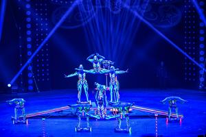 (251101) -- HENGQIN, 1 noviembre, 2025 (Xinhua) -- Artistas realizan una presentación durante la ceremonia de inauguración del 8 Festival Internacional de Circo de China, en Hengqin, en la provincia de Guangdong, en el sur de China, el 1 de noviembre de 2025. El festival comenzó el sábado en Hengqin, con la participación de casi 500 artistas de 18 compañías circenses de primer nivel. (Xinhua/Xiao Ennan) (oa) (da)