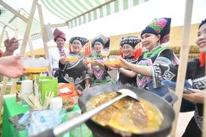 (251101) -- GUANGXI, 1 noviembre, 2025 (Xinhua) -- Personas disfrutan de la gastronomía local durante una celebración de la cosecha, en la aldea de Silang de Liuzhou, en la región autónoma zhuang de Guangxi, en el sur de China, el 1 de noviembre de 2025. (Xinhua/Zheng Changhao) (oa) (da)
