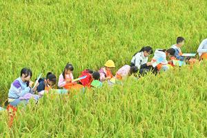 (251101) -- GUANGXI, 1 noviembre, 2025 (Xinhua) -- Niños dibujan en un campo durante una celebración de la cosecha, en la aldea de Silang de Liuzhou, en la región autónoma zhuang de Guangxi, en el sur de China, el 1 de noviembre de 2025. (Xinhua/Huang Xiaobang) (oa) (da)