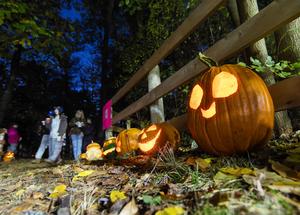 (251102) -- MISSISSAUGA, 2 noviembre, 2025 (Xinhua) -- Imagen del 1 de noviembre de 2025 de personas observando linternas de Halloween durante un desfile de calabazas en un parque, en Mississauga, Ontario, Canadá. (Xinhua/Zou Zheng) (oa) (da)