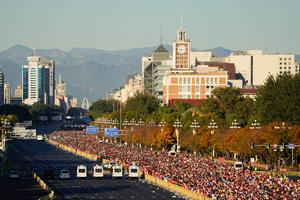 (251102) -- BEIJING, 2 noviembre, 2025 (Xinhua) -- Participantes compiten durante el Maratón de Beijing 2025, en Beijing, capital de China, el 2 de noviembre de 2025. (Xinhua/Xie Han) (oa) (ah)