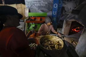 (251102) -- IMBABURA, 2 noviembre, 2025 (Xinhua) -- Imagen del 31 de octubre de 2025 de una mujer indígena de la comunidad de Turuco preparando pan en un horno de leña durante los preparativos para el Día de los Difuntos, en la provincia de Imbabura, en el norte de Ecuador. (Xinhua/Ricardo Landeta) (rl) (rtg) (ah)