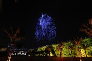(251102) -- GIZA, 2 noviembre, 2025 (Xinhua) -- Imagen del 1 de noviembre de 2025 de un espectáculo de luces y drones durante la inauguración del Gran Museo Egipcio (GME), en Giza, Egipto. Luego de dos décadas de construcción, Egipto inauguró el sábado el GME, el museo más grande del mundo dedicado a una sola civilización, con una gran ceremonia realizada cerca de las pirámides y la Esfinge, en un histórico evento cultural para el país reconocido por su rica herencia. (Xinhua/Ahmed Gomaa) (rtg) (ah)