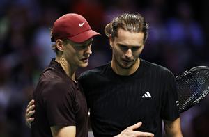 (251102) -- PARIS, 2 noviembre, 2025 (Xinhua) -- Imagen del 1 de noviembre de 2025 Jannik Sinner (i), de Italia, y Alexander Zverev, de Alemania, abrazándose al término de su partido de semifinales en el torneo de tenis ATP Masters 1000 de París, en el Paris La Defense Arena, en París, Francia. (Xinhua/Gao Jing) (oa) (da)