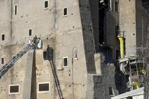 (251103) — ROMA, 3 noviembre, 2025 (Xinhua) — Bomberos trabajan en el sitio después de que una sección de la Torre dei Conti, una torre medieval actualmente en restauración, se derrumbara, en el centro de Roma, Italia, el 3 de noviembre de 2025. Una sección de la Torre dei Conti se derrumbó el lunes, hiriendo a cuatro trabajadores de la construcción y desencadenando una operación de rescate de emergencia, informaron medios locales. (Xinhua/Alberto Lingria) (rtg) (ah) (ce)