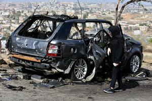 (251103) -- BEIRUT, 3 noviembre, 2025 (Xinhua) -- Imagen del 2 de noviembre de 2025 de una mujer junto a los restos de un automóvil bombardeado por un dron israelí, en Kfar Roummane, en el sur de Líbano. Cuatro personas murieron y otras tres resultaron heridas la noche del sábado en un ataque aéreo israelí contra la aldea libanesa de Kfar Roummane, en el sur del país, según informó el Centro de Operaciones de Emergencias de Salud Pública de Líbano. (Xinhua/Ali Hashisho) (rtg) (ah) (ce)