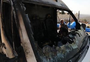 (251103) -- QALQILYA, 3 noviembre, 2025 (Xinhua) -- Imagen del 2 de noviembre de 2025 de un palestino inspeccionando los restos de un vehículo después de que fuera incendiado por colonos israelíes, en la aldea de Far'ata, en el este de Qalqilya, en Cisjordania. (Xinhua/Nidal Eshtayeh) (oa) (ah) (ce)