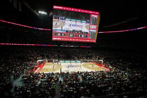 (251102) -- CIUDAD DE MEXICO, 2 noviembre, 2025 (Xinhua) -- Imagen del 1 de noviembre de 2025 de jugadores compitiendo durante el partido de temporada regular 2025-2026 de la NBA, entre Detroit Pistons y Dallas Mavericks, en la Ciudad de México, capital de México. (Xinhua/Francisco Cañedo) (rtg) (oa) (ah)