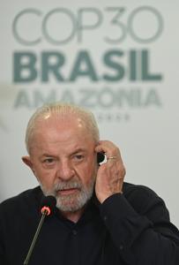 (251104) -- BELEM, 4 noviembre, 2025 (Xinhua) -- El presidente brasileño, Luiz Inácio Lula da Silva, participa durante una conferencia de prensa con representantes de agencias de noticias internacionales previo al inicio de la 30ª Conferencia de las Partes (COP30) de la Convención Marco de las Naciones Unidas sobre el Cambio Climático, en Belém, estado de Pará, Brasil, el 4 de noviembre de 2025. (Xinhua/Lucio Tavora) (lt) (jg) (ra) (ce)