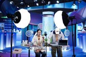 (251104) -- SHANGHAI, 4 noviembre, 2025 (Xinhua) -- Trabajadores realizan una transmisión en vivo en el área de exposición de Equipos Médicos y Productos para el Cuidado de la Salud de la VIII Exposición Internacional de Importaciones de China (CIIE, por sus siglas en inglés), en Shanghai, en el este de China, el 4 de noviembre de 2025. La VIII CIIE se celebrará en Shanghai del 5 al 10 de noviembre. (Xinhua/Fan Yuqing) (jg) (ra) (ce)