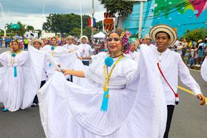 (251104) -- CIUDAD DE PANAMA, 4 noviembre, 2025 (Xinhua) -- Imagen del 3 de noviembre de 2025 de estudiantes portando vestimenta tradicional mientras participan en un desfile durante la celebración por los 122 años de la Separación de Panamá de Colombia, en la Ciudad de Panamá, capital de Panamá. (Xinhua/Daniel González) (dg) (jg) (ra) (ce)