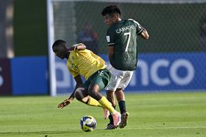 (251104) -- DOHA, 4 noviembre, 2025 (Xinhua) -- Imagen del 3 de noviembre de 2025 de Tumi Mothapo (i), de Sudáfrica, disputando el balón con Alejandro Camacho (d), de Bolivia, durante el partido del Grupo A de la Copa Mundial Sub-17 de la FIFA Qatar 2025 entre Sudáfrica y Bolivia, en Doha, Qatar. (Xinhua/Nikku) (oa) (ah) (ce)