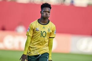 (251104) -- DOHA, 4 noviembre, 2025 (Xinhua) -- Imagen del 3 de noviembre de 2025 de Emile Witbooi, de Sudáfrica, festejando tras marcar la primera anotación durante el partido del Grupo A de la Copa Mundial Sub-17 de la FIFA Qatar 2025 entre Sudáfrica y Bolivia, en Doha, Qatar. (Xinhua/Nikku) (oa) (ah) (ce)