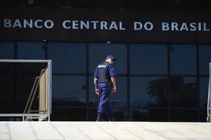 (250612) -- BRASILIA, 12 junio, 2025 (Xinhua) -- Un elemento de seguridad vigila frente a la sede del Banco Central de Brasil, en Brasilia, Brasil, el 12 de junio de 2025. (Xinhua/Lucio Tavora) (lt) (rtg) (ra) (vf)
