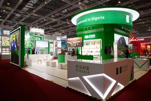 (251105) -- SHANGHAI, 5 noviembre, 2025 (Xinhua) -- Imagen del 5 de noviembre de 2025 del Pabellón de Nigeria durante la VIII Exposición Internacional de Importaciones de China (CIIE, por sus siglas en inglés), en Shanghai, en el este de China. La VIII CIIE se inauguró aquí el miércoles. Tailandia, Emiratos Arabes Unidos, Nigeria, Georgia, Suecia y Colombia son los países invitados de honor en la CIIE de este año. (Xinhua/Tian Weiwei) (ah) (ra) (ce)