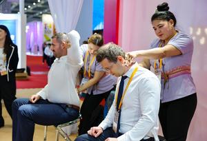(251105) -- SHANGHAI, 5 noviembre, 2025 (Xinhua) -- Visitantes experimentan el masaje tailandés en el Pabellón de Tailandia durante la VIII Exposición Internacional de Importaciones de China (CIIE, por sus siglas en inglés), en Shanghai, en el este de China, el 5 de noviembre de 2025. La VIII CIIE se inauguró aquí el miércoles. Tailandia, Emiratos Arabes Unidos, Nigeria, Georgia, Suecia y Colombia son los países invitados de honor en la CIIE de este año. (Xinhua/Wang Zecong) (ah) (ra) (ce)