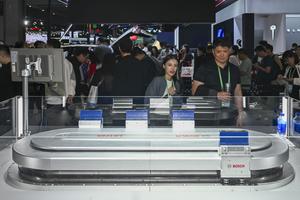 (251106) -- SHANGHAI, 6 noviembre, 2025 (Xinhua) -- Visitantes observan LeTrak, un sistema de transporte por accionamiento magnético de Bosch, en el área de exposición Automotriz de la VIII Exposición Internacional de Importaciones de China (CIIE, por sus siglas en inglés), en Shanghai, en el este de China, el 6 de noviembre de 2025. La VIII CIIE, que se inauguró en Shanghai el miércoles y durará hasta el 10 de noviembre, muestra equipos avanzados, tecnologías de vanguardia y productos innovadores en campos como la ciencia y tecnología, la industria manufactura y médica. (Xinhua/Chen Haoming) (rtg) (ra) (da)