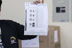 (251105) -- QUITO, 5 noviembre, 2025 (Xinhua) -- Imagen proveída por el Consejo Nacional Electoral (CNE) de Ecuador de un observador electoral acreditado revisando el proceso de impresión de papeletas y documentos electorales, en el Instituto Geográfico Militar, en Quito, capital de Ecuador, el 5 de noviembre de 2025. El CNE de Ecuador comenzó el miércoles la distribución de 41.345 paquetes electorales en todo el territorio nacional, de cara a los comicios de la consulta popular y referendo constitucional del Gobierno convocados para el próximo 16 de noviembre. (Xinhua/Hamilton López/CNE) (jg) (da) (ce)