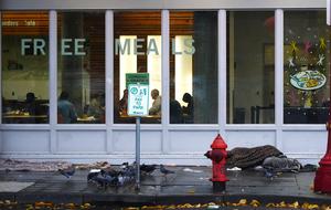 (251105) -- PORTLAND, 5 noviembre, 2025 (Xinhua) -- Una persona sin hogar es vista descansando en una acera frente a un centro de distribución de comida gratuita, en Portland, Oregón, Estados Unidos, el 5 de noviembre de 2025. El actual cierre del Gobierno federal de Estados Unidos ha entrado en su 36º día a la 00:01 hora local (05:01 GMT) del miércoles, sobrepasando el anterior récord de 35 días registrado durante el cierre de 2018-2019 y convirtiéndose así en el más largo de la historia del país norteamericano. (Xinhua/Wu Xiaoling) (jg) (da) (ce)