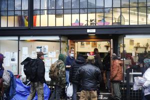 (251105) -- PORTLAND, 5 noviembre, 2025 (Xinhua) -- Personas sin hogar esperan recibir suministros de ayuda de una organización sin fines de lucro, en Portland, Oregón, Estados Unidos, el 5 de noviembre de 2025. El actual cierre del Gobierno federal de Estados Unidos ha entrado en su 36º día a la 00:01 hora local (05:01 GMT) del miércoles, sobrepasando el anterior récord de 35 días registrado durante el cierre de 2018-2019 y convirtiéndose así en el más largo de la historia del país norteamericano. (Xinhua/Wu Xiaoling) (jg) (da) (ce)