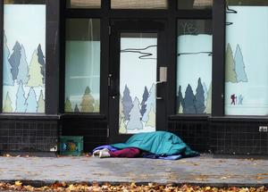 (251105) -- PORTLAND, 5 noviembre, 2025 (Xinhua) -- Imagen del 4 de noviembre de 2025 de una persona sin hogar vista durmiendo en una acera, en Portland, Oregón, Estados Unidos. El Senado de Estados Unidos volvió a rechazar el martes un proyecto de ley de financiamiento temporal, en el decimocuarto intento fallido. (Xinhua/Wu Xiaoling) (jg) (da) (ce)