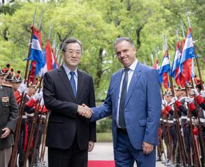 (251105) — MONTEVIDEO, 5 noviembre, 2025 (Xinhua) — El vice primer ministro chino Ding Xuexiang, también miembro del Comité Permanente del Buró Político del Comité Central del Partido Comunista de China, se reúne con el presidente uruguayo, Yamandú Orsi, en Montevideo, Uruguay, el 4 de noviembre de 2025. (Xinhua/Zhai Jianlan) (jg) (da) (ce)