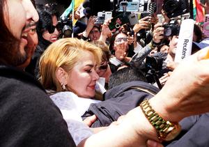 (251106) -- LA PAZ, 6 noviembre, 2025 (Xinhua) -- La expresidenta interina boliviana, Jeanine Añez (c), reacciona después de salir del penal de Miraflores, en La Paz, Bolivia, el 6 de noviembre de 2025. Añez (2019-2020), recuperó el jueves su libertad, tras cuatro años y ocho meses de reclusión en el penal de Miraflores, en la ciudad de La Paz, luego de que el Tribunal Supremo de Justicia anuló la sentencia de 10 años de cárcel por un supuesto golpe de Estado. (Xinhua/Javier Mamani) (jm) (rtg) (ra) (da)