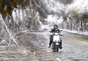 (251106) -- URUMQI, 6 noviembre, 2025 (Xinhua) -- Un repartidor circula en una calle después de una nevada, en Urumqi, en la región autónoma uygur de Xinjiang, en el noroeste de China, el 6 de noviembre de 2025. Una tormenta de nieve ha azotado gran parte de la región autónoma uygur de Xinjiang, en el noroeste de China, desde el miércoles, interrumpiendo el tráfico en varias zonas y estableciendo un nuevo récord de precipitaciones en la capital regional, Urumqi. (Xinhua/Wang Fei) (rtg) (ra) (da)