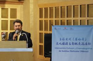 (251106) -- CIUDAD DE MEXICO, 6 noviembre, 2025 (Xinhua) -- Imagen del 4 de noviembre de 2025 del diputado, Raymundo Vázquez, presidente del Grupo de Amistad México-China de la Cámara de Diputados de México, hablando durante el Intercambio Cultural y Cinematográfico "Guizhou Multicolor", en el Museo Casa de Carranza, en la Ciudad de México, capital de México. El Museo Casa de Carranza de la capital mexicana acogió el martes el Intercambio Cultural y Cinematográfico "Guizhou Multicolor", en el que se proyectaron documentales que mostraron la riqueza natural, cultural y social de una de las provincias más diversas de China. (Xinhua/Francisco Cañedo) (fc) (rtg) (ra) (ce)