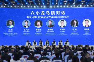 (251107) -- TONGXIANG, 7 noviembre, 2025 (Xinhua) -- El Diálogo de Wuzhen "Seis Pequeños Dragones" se lleva a cabo durante la Cumbre de Wuzhen de la Conferencia Mundial de Internet 2025, en Wuzhen, en la provincia de Zhejiang, en el este de China, el 7 de noviembre de 2025. (Xinhua/Huang Zongzhi) (jg) (rtg) (da)