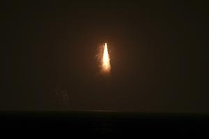 (251109) -- HAIYANG, 9 noviembre, 2025 (Xinhua) -- El cohete portador Gran Marcha-11 que transporta tres satélites de prueba Shiyan-32 despega desde las aguas frente a la costa de Haiyang, en la provincia de Shandong, en el este de China, el 9 de noviembre de 2025. El cohete portador Gran Marcha-11 fue lanzado por el Centro de Lanzamiento de Satélites de Taiyuan a las 5:01 (hora de Beijing) y los tres satélites de prueba Shiyan-32 entraron con éxito en la órbita preestablecida. Estos satélites se utilizan principalmente para realizar experimentos en tecnologías espaciales. El lanzamiento fue la misión de vuelo número 606 de la serie de cohetes portadores Gran Marcha. (Xinhua/Guo Jinqi) (oa) (ah)