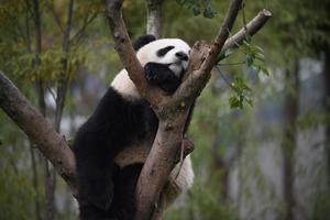 (251107) -- CHENGDU, 7 noviembre, 2025 (Xinhua) -- Imagen del 30 de octubre de 2025 de un panda gigante descansando sobre un árbol en la Base de Investigación de Cría de Pandas Gigantes de Chengdu, en Chengdu, en la provincia de Sichuan, en el suroeste de China. (Xinhua/Bao Feifei) (oa) (ra) (da)