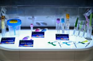 (251107) -- SHANGHAI, 7 noviembre, 2025 (Xinhua) -- Imagen del 7 de noviembre de 2025 de tubos de extracción de sangre para la atención domiciliaria de personas mayores, exhibidos en el área de exposición de Equipo Médico y Productos para el Cuidado de la Salud durante la VIII Exposición Internacional de Importaciones de China (CIIE, por sus siglas en inglés), en Shanghai, en el este de China. En la VIII CIIE, una serie de productos y servicios para la salud adaptados a las personas mayores se exhibieron en múltiples áreas de la exposición. (Xinhua/Cai Xiangxin) (oa) (ra) (ce)
