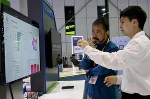 (251109) -- SHANGHAI, 9 noviembre, 2025 (Xinhua) -- Un empleado (d), presenta soluciones digitales con inteligencia artificial aplicadas en industrias móviles en la Sección Especial de Incubación de Innovación durante la VIII Exposición Internacional de Importaciones de China (CIIE, por sus siglas en inglés), en Shanghai, en el este de China, el 9 de noviembre de 2025. La Sección Especial de Incubación de Innovación de la CIIE de este año ofrece a startups y talentos globales participantes recursos de innovación tecnológica y oportunidades de cooperación para explorar y desarrollar conjuntamente el mercado chino. (Xinhua/Fang Zhe) (oa) (ah)