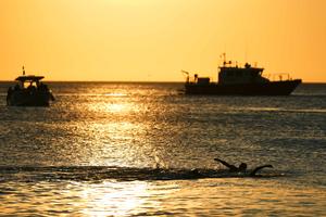 (251109) -- SANTA MARTA, 9 noviembre, 2025 (Xinhua) -- Imagen del 8 de noviembre de 2025 de personas nadando en el mar, en Santa Marta, Colombia. La ciudad colombiana de Santa Marta será anfitriona de la IV Cumbre de la Comunidad de Estados Latinoamericanos y Caribeños-Unión Europea (CELAC-UE) del 9 al 10 de noviembre. (Xinhua/Andrés Moreno) (am) (rtg) (da)