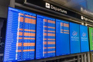 (251108) -- ARLINGTON, 8 noviembre, 2025 (Xinhua) -- Imagen del 7 de noviembre de 2025 de un panel de información de vuelos en el Aeropuerto Nacional Ronald Reagan de Washington, en Arlington, Virginia, Estados Unidos. Más de 1.000 vuelos fueron cancelados el viernes en Estados Unidos, tras entrar en vigor una reducción del tráfico aéreo debido a la escasez de controladores durante el cierre gubernamental más largo de la historia del país. Según el portal estadounidense de seguimiento de vuelos FlightAware, hasta las 17:00 hora local, se habían registrado 4.309 vuelos retrasados y 1.002 cancelados. Por su parte, el secretario de Transporte, Sean Duffy, advirtió el viernes que las reducciones podrían llegar hasta el 20 por ciento si el cierre del Gobierno se prolonga. (Xinhua/Hu Yousong) (jg) (da)