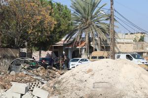 (251107) -- ZAWTAR AL-SHARQIYA, 7 noviembre, 2025 (Xinhua) -- Imagen del 7 de noviembre de 2025 de personas inspeccionando edificios destruidos por ataques aéreos israelíes de un día anterior, en el poblado de Zawtar al-Sharqiya, Líbano. Israel lanzó una nueva oleada de ataques aéreos en el sur del Líbano el jueves, advirtiendo a los residentes de varias aldeas que evacuaran mientras las tensiones seguían aumentando a pesar del alto al fuego. (Xinhua/Taher Abu Hamdan) (oa) (ra) (da)