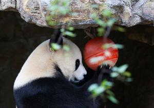 (251110) -- ADELAIDA, 10 noviembre, 2025 (Xinhua) -- La panda gigante Yilan se divierte con un juguete en el Zoológico de Adelaida, en Adelaida, Australia, el 10 de noviembre de 2025. La pareja de pandas gigantes Xingqiu, un macho, e Yilan, una hembra, llegaron a Adelaida el 15 de diciembre de 2024. (Xinhua/Ma Ping) (oa) (ah) (ce)