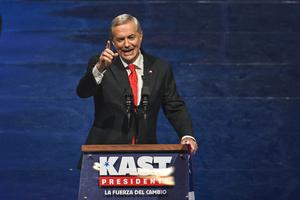 (251112) -- SANTIAGO, 12 noviembre, 2025 (Xinhua) -- Imagen del 11 de noviembre de 2025 del candidato a la Presidencia chilena, el abogado y excandidato presidencial derechista en 2017 y 2021, José Antonio Kast, pronunciando un discurso durante su cierre de campaña, en Santiago, capital de Chile. (Xinhua/Jorge Villegas) (jv) (ah) (ra) (ce)