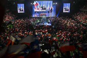 (251112) -- SANTIAGO, 12 noviembre, 2025 (Xinhua) -- Imagen del 11 de noviembre de 2025 de simpatizantes del candidato a la Presidencia chilena, el abogado y excandidato presidencial derechista en 2017 y 2021, José Antonio Kast, asistiendo a su cierre de campaña, en Santiago, capital de Chile. (Xinhua/Jorge Villegas) (jv) (ah) (ra) (ce)