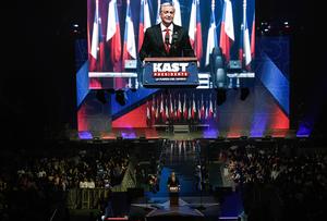 (251112) -- SANTIAGO, 12 noviembre, 2025 (Xinhua) -- Imagen del 11 de noviembre de 2025 del candidato a la Presidencia chilena, el abogado y excandidato presidencial derechista en 2017 y 2021, José Antonio Kast (c), pronunciando un discurso durante su cierre de campaña, en Santiago, capital de Chile. (Xinhua/Jorge Villegas) (jv) (ah) (ra) (ce)