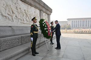 (251112) -- BEIJING, 12 noviembre, 2025 (Xinhua) -- El rey de España, Felipe VI, deposita una ofrenda floral en el Monumento a los Héroes del Pueblo, en la Plaza Tian'anmen, en Beijing, capital de China, el 12 de noviembre de 2025. (Xinhua/Dai Tianfang) (ah) (ra) (ce)