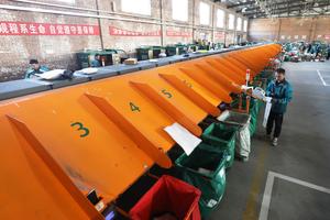 (251111) -- BEIJING, 11 noviembre, 2025 (Xinhua) -- Empleados trabajan en una sucursal de China Post, en la ciudad de Tangshan, en la provincia de Hebei, en el norte de China, el 11 de noviembre de 2025. Las compañías de comercio electrónico y logística a lo largo de China están trabajando a plena capacidad durante el festival anual de compras "Doble Once". (Xinhua/Zhu Dayong) (oa) (ah) (ce)