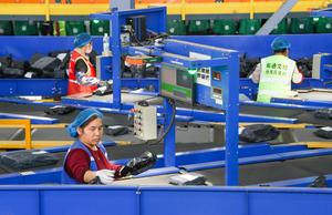 (251111) -- BEIJING, 11 noviembre, 2025 (Xinhua) -- Trabajadores laboran en una línea de clasificación automática de paquetes en una sucursal de China Post, en la ciudad de Zhenjiang, en la provincia de Jiangsu, en el este de China, el 11 de noviembre de 2025. Las compañías de comercio electrónico y logística a lo largo de China están trabajando a plena capacidad durante el festival anual de compras "Doble Once". (Xinhua/Zhong Xueman) (oa) (ah) (ce)