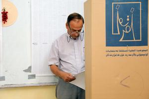 (251111) -- BAGDAD, 11 noviembre, 2025 (Xinhua) -- Un hombre emite su voto en un centro de votación, en Bagdad, Irak, el 11 de noviembre de 2025. Los iraquíes comenzaron a votar el martes por la mañana en las elecciones parlamentarias para el nuevo Consejo de Representantes de 329 miembros. (Xinhua/Khalil Dawood) (oa) (ah) (ce)