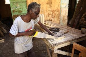 (251110) -- JARTUM, 10 noviembre, 2025 (Xinhua) -- Imagen del 28 de octubre de 2025 de un artesano fabricando un armario, en el barrio de Al-Thawra, Omdurman, Sudán. En todo el estado de Jartum, en Sudán, el sonido de martillos y máquinas de coser resuena ahora donde antes dominaban los disparos. (Xinhua/Mohamed Khidir) (oa) (ah) (ce)