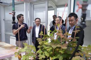 (251112) -- CANELONES, 12 noviembre, 2025 (Xinhua) -- Imagen del 11 de noviembre de 2025 del rector de la Universidad de la Agricultura de Qingdao de China, Zhao Jinshan (2-i), participando en un recorrido con autoridades del Instituto Nacional de Investigación Agropecuaria (INIA) de Uruguay durante una ceremonia llevada a cabo en las instalaciones de la Estación Experimental INIA Las Brujas, en el departamento de Canelones, Uruguay. Instituciones científicas y educativas de China y Uruguay firmaron el martes un memorando de entendimiento para establecer un inédito Laboratorio Conjunto de Agricultura de Pasturas en el marco de la iniciativa de la Franja y la Ruta, destinada a fortalecer la cooperación científica y tecnológica en innovación agropecuaria. (Xinhua/Nicolás Celaya) (nc) (jg) (da) (ce)