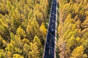 (251112) — BEIJING, 12 noviembre, 2025 (Xinhua) — Vista aérea tomada con un dron el 27 de septiembre de 2025 del paisaje a lo largo de la carretera nacional G331, en el municipio de Erdaobaihe del distrito de Antu, en la provincia de Jilin, en el noreste de China. La carretera nacional G331, con una longitud total de 9.333 km es la segunda carretera nacional más larga de China. (Xinhua/Zhang Nan) (jg) (da) (ce)