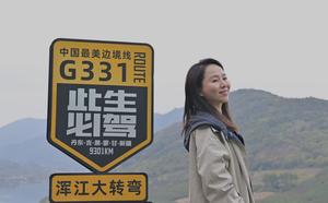 (251112) -- BEIJING, 12 noviembre, 2025 (Xinhua) -- Imagen del 12 de octubre de 2025 de una turista posando para una fotografía frente a una señal de tránsito de la carretera nacional G331, en el noreste de China. La carretera nacional G331, con una longitud total de 9.333 km es la segunda carretera nacional más larga de China. (Xinhua/Wu Qinghao) (jg) (da) (ce)